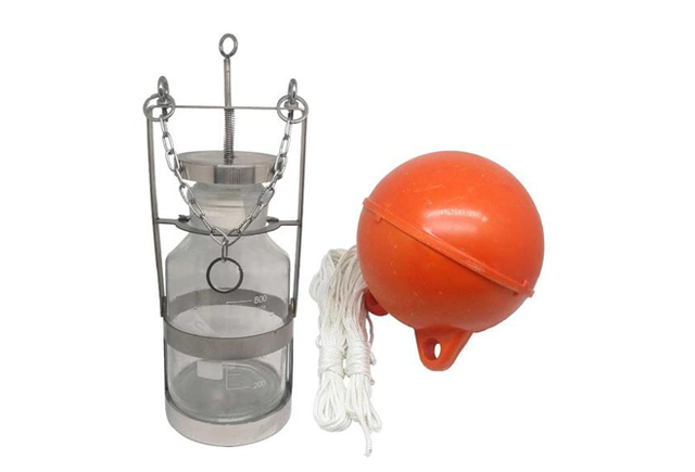 2.組裝水質(zhì)取樣籠:提梁放倒,將清洗好的玻璃瓶放入水質(zhì)取樣籠內(nèi),豎起提梁。